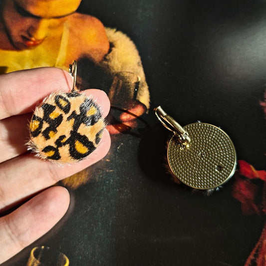 Faux cheetah fur statement earrings