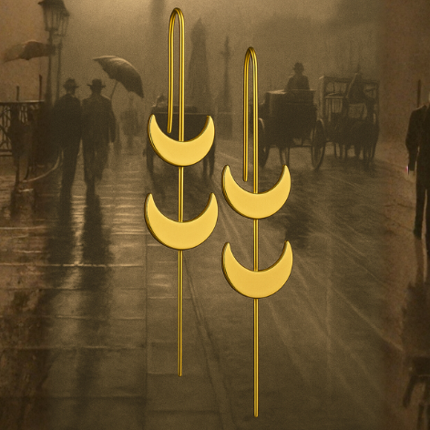 The Crescent Reign draws inspiration from the shifting phases of the moon - a symbol of power, grace, and constant change. Handcrafted in brass with an antique golden finish, it sits delicately yet boldly along the ear, catching light from every angle.